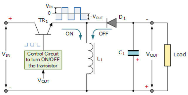 Switching Regulators are grouped into Buck, (step-down), (Boost), step-up, or Buck-Boost converter.